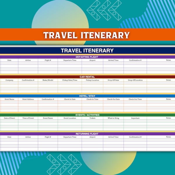 Travel Itinerary Google Docs Template Etsy