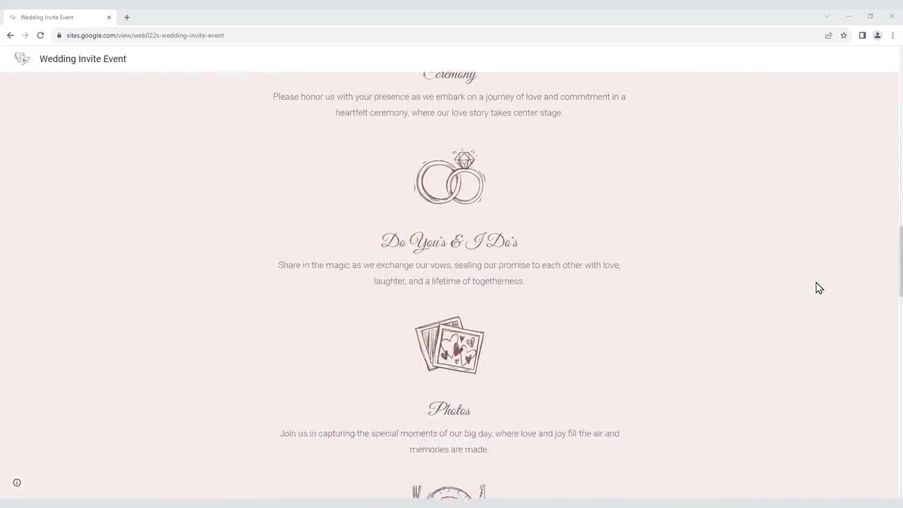 Romantic Wedding Website Google Sites Template