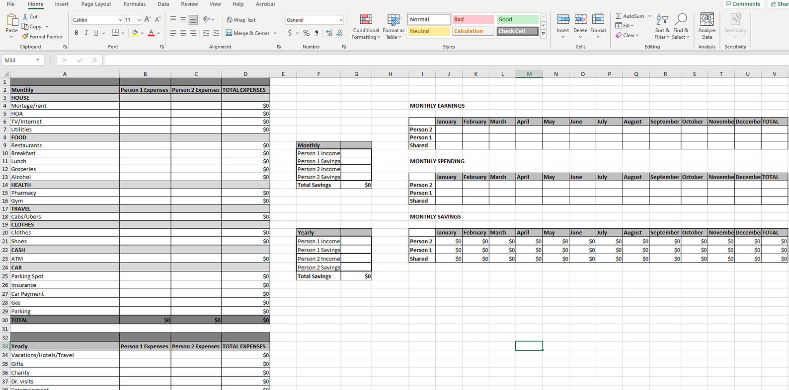 Blank Budget Spreadsheet Template for Excel Yearly Monthly Budget