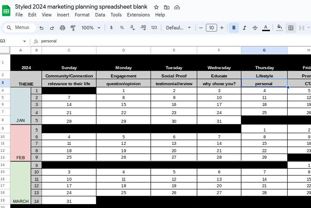 Digital Spreadsheet 2024 Social Media Content and Email Marketing