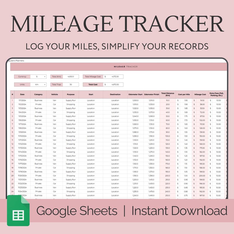 Excel Spreadsheet Mileage Log Template Etsy UK