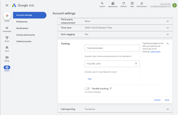 ClickFreeze Setting up the tracking template URL on your Google Ads