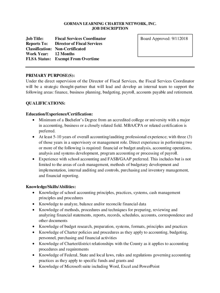 Fillable Online Job Descriptions for Gorman Learning Charter Network