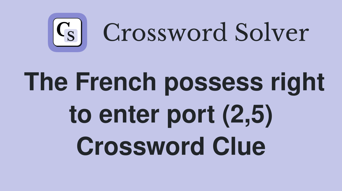 The French possess right to enter port (2 5) Crossword Clue Answers