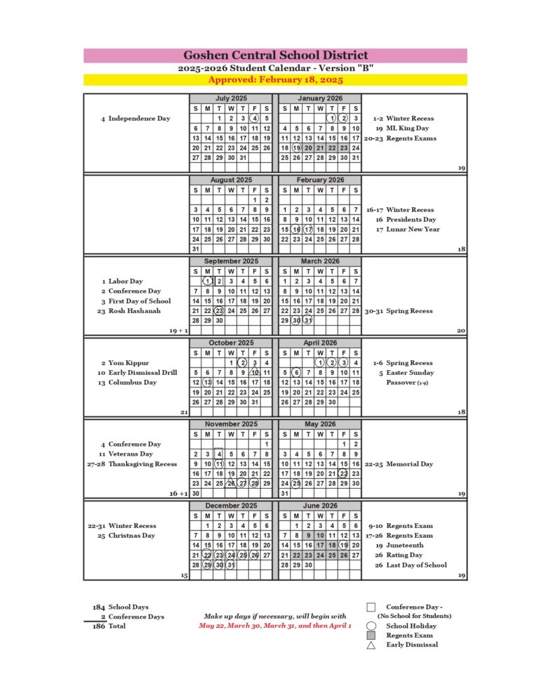 Goshen CSD 25 26 Calendar PDF REVISED EduCounty