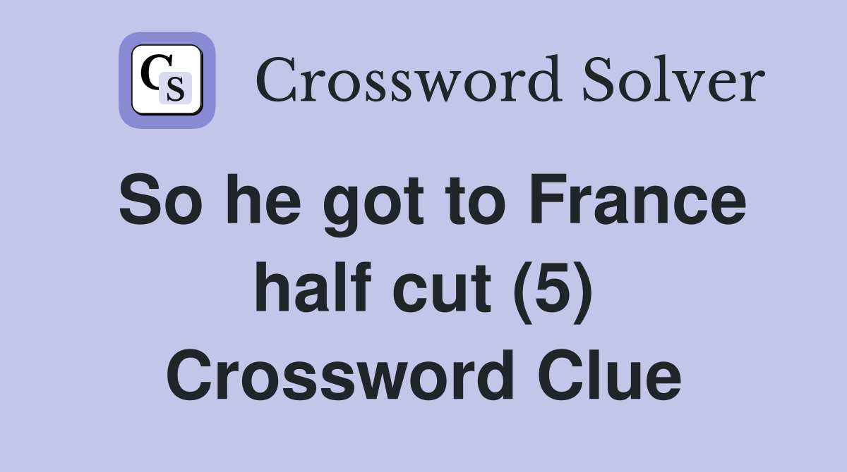 So he got to France half cut (5) Crossword Clue Answers Crossword