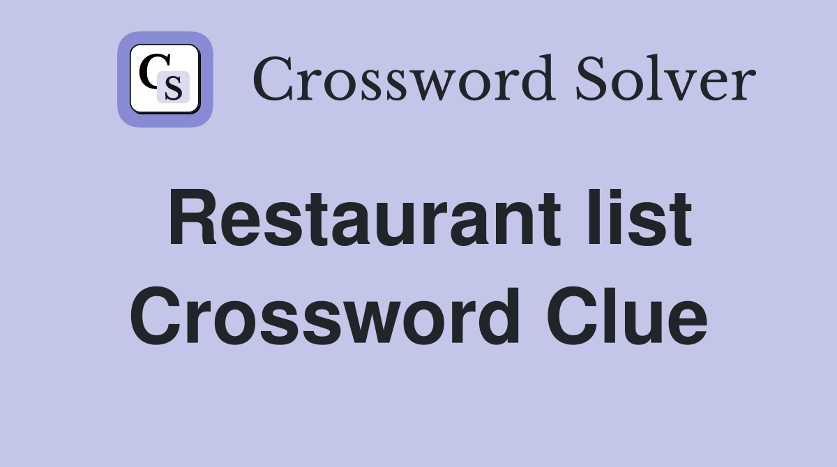 Restaurant list Crossword Clue Answers Crossword Solver