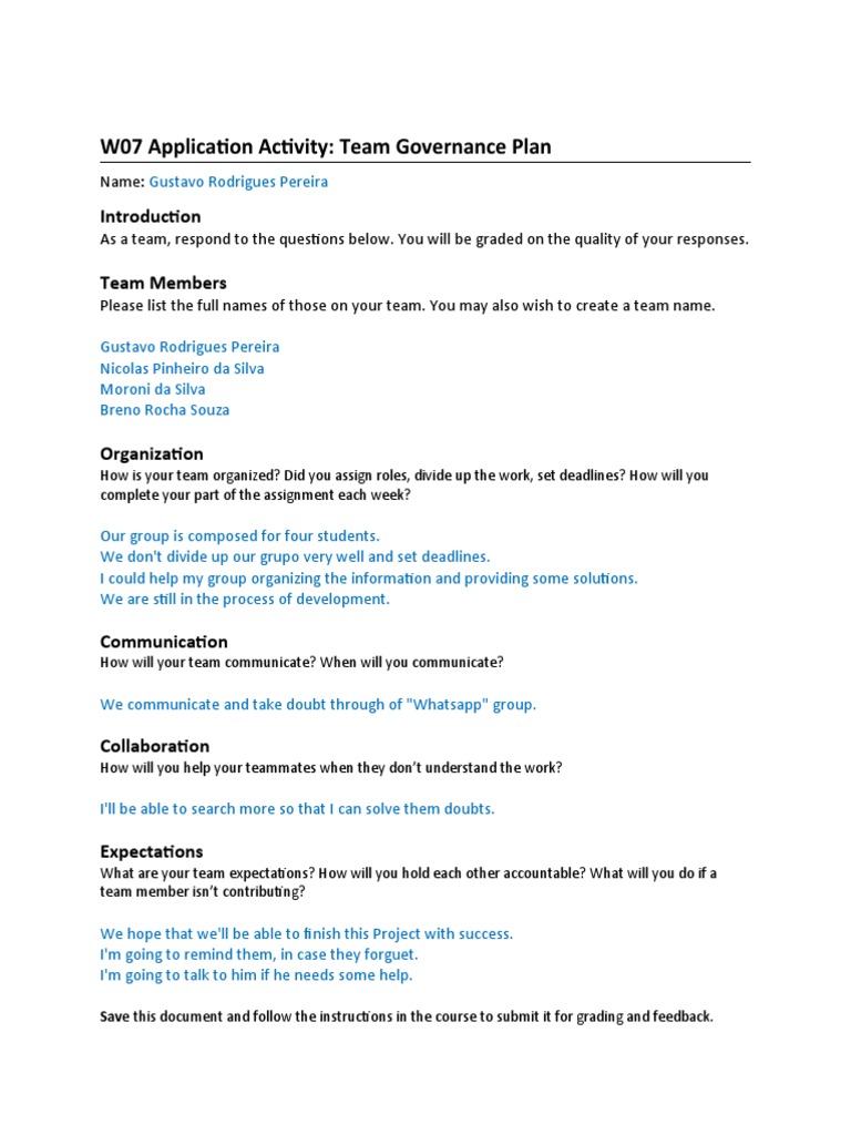 Task 2 Governance Plan Template 1 docx MASTER GOVERNANCE PLAN