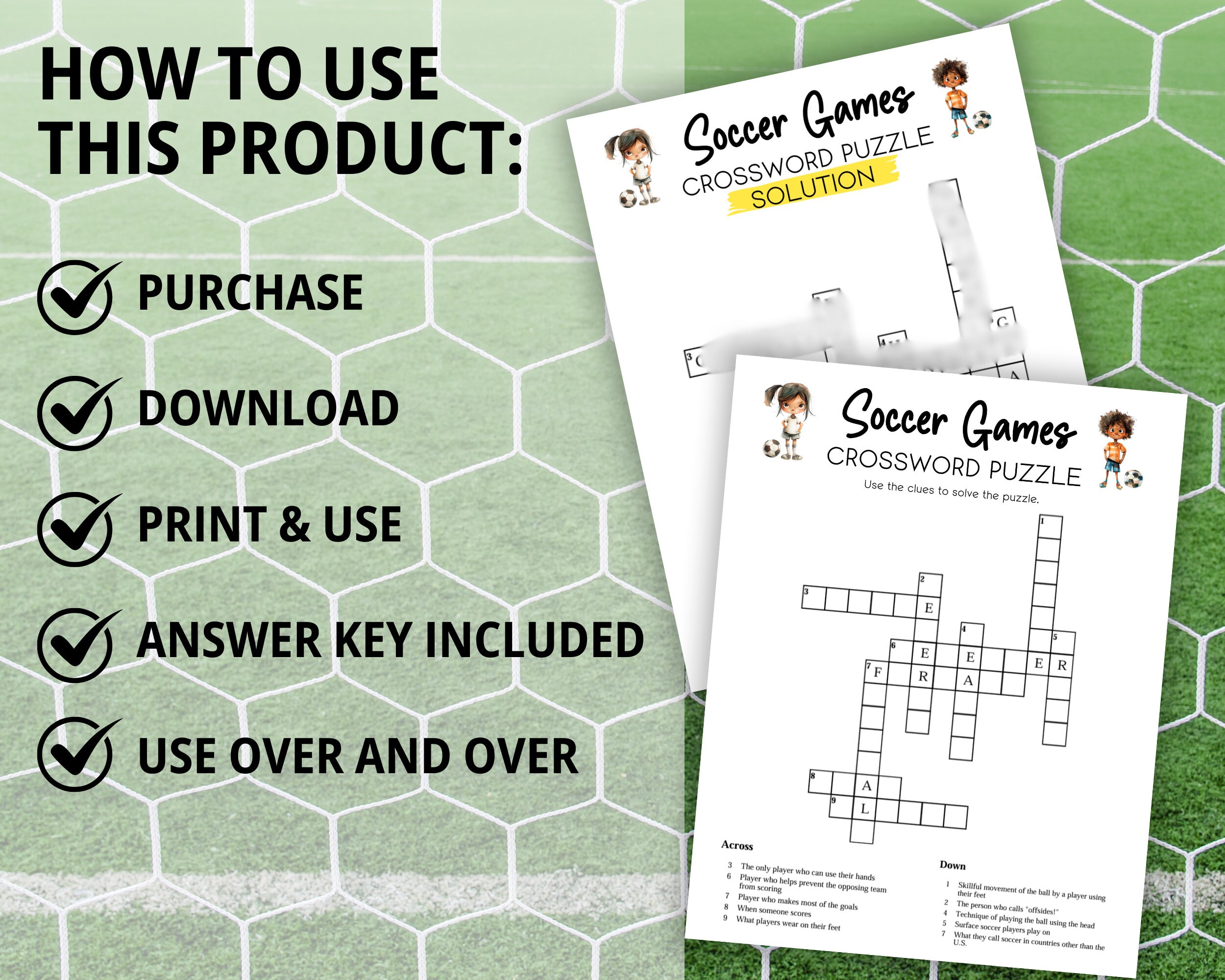 Soccer Crossword Puzzle / Printable Soccer Team Party Games / Soccer