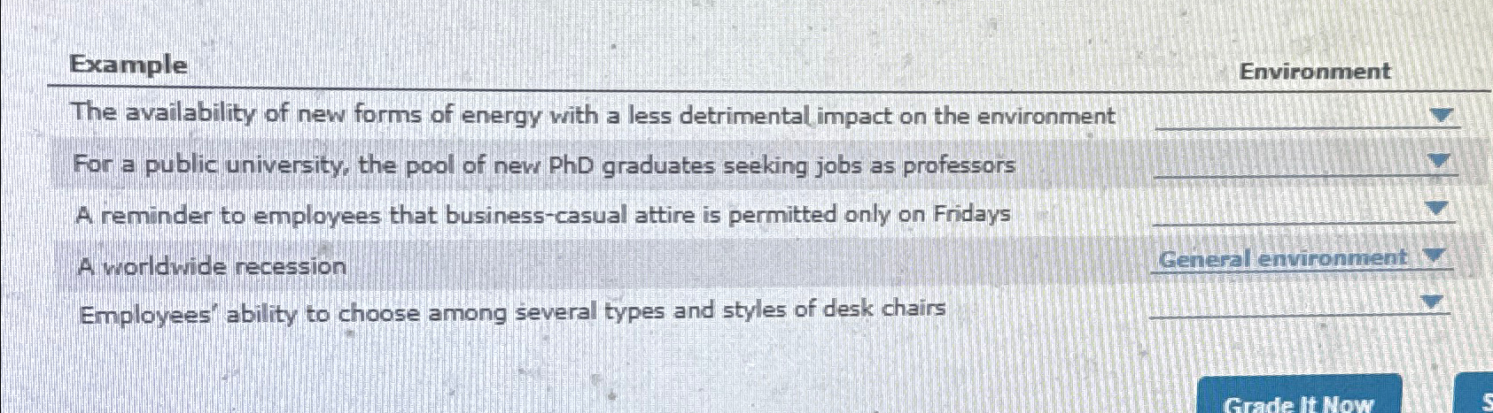 Solved ExampleEnvironmentThe availability of new forms of Chegg com