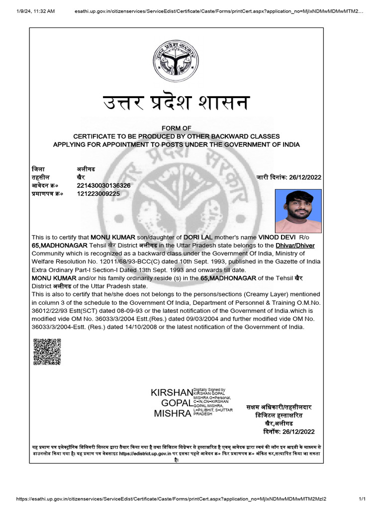 Esathi Up gov in Citizenservices ServiceEdist Certificate Caste
