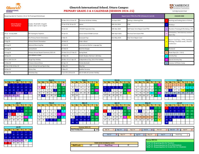 GIS Primary G3 4 School Academic Calendar 2024 25 PDF Holidays