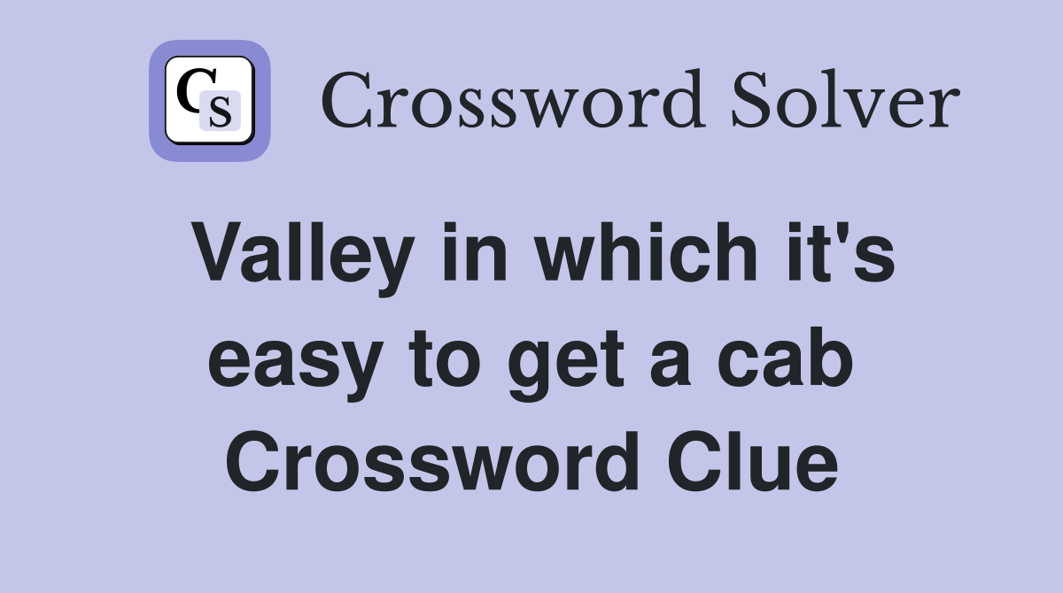Valley in which it s easy to get a cab Crossword Clue Answers