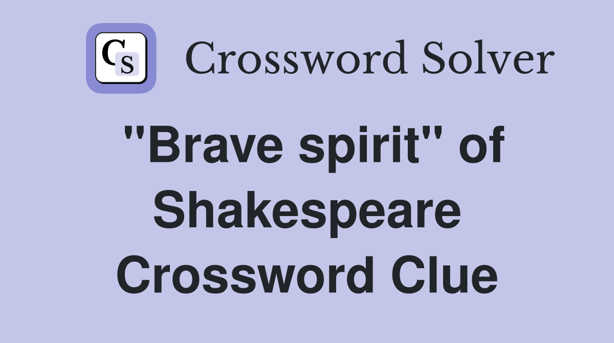 quot Brave spirit quot of Shakespeare Crossword Clue Answers Crossword Solver