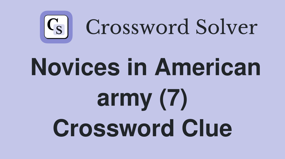 Novices in American army (7) Crossword Clue Answers Crossword Solver