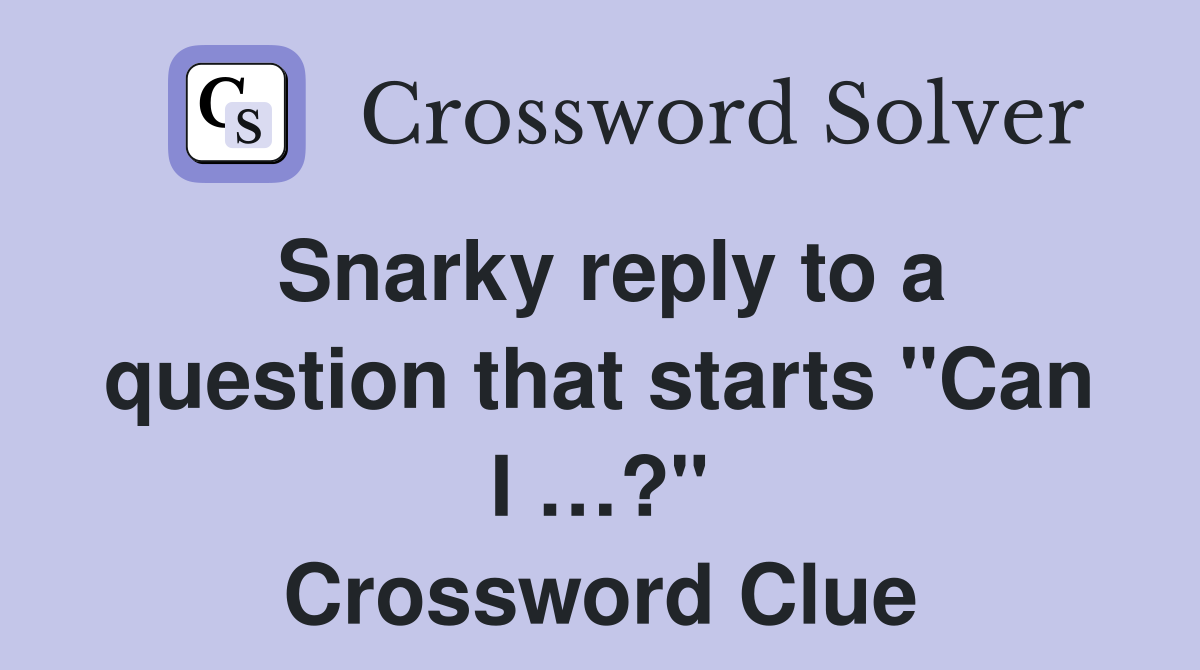 Snarky reply to a question that starts quot Can I ? quot Crossword Clue
