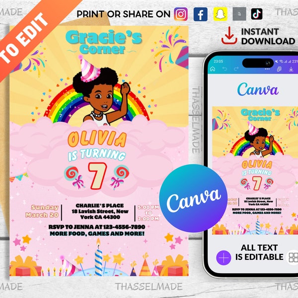 Editable Gracies Corner Birthday Invitation Template Instant Download