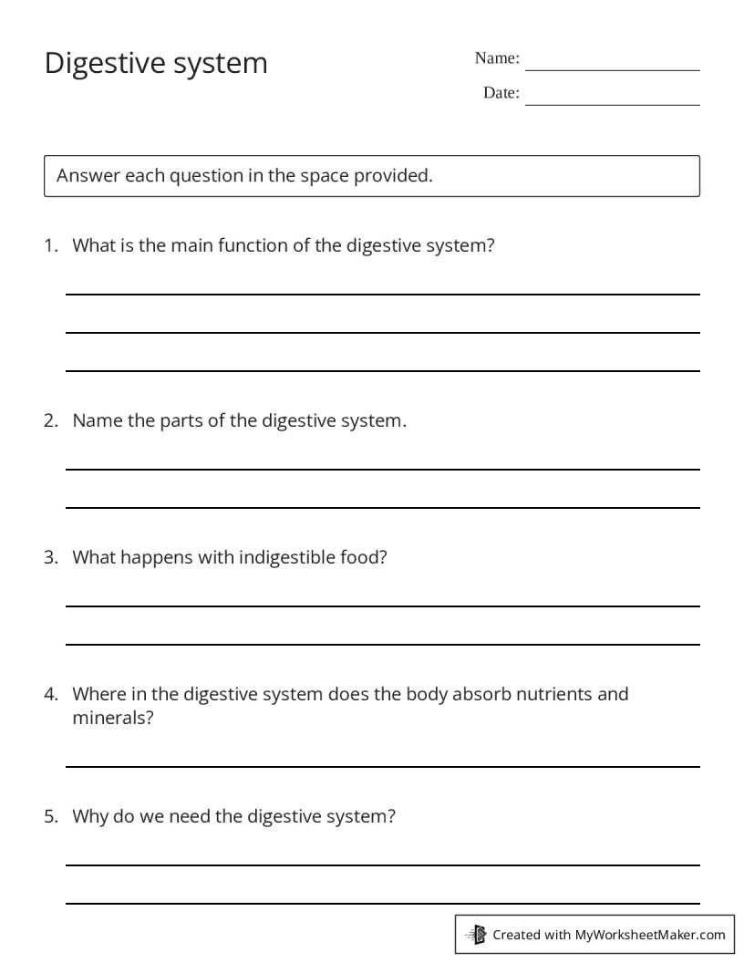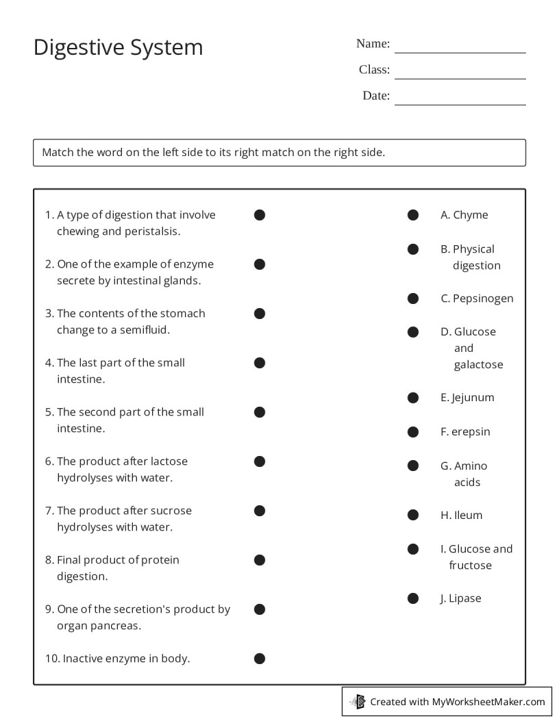 Digestive System My Worksheet Maker: Create Your Own Worksheets