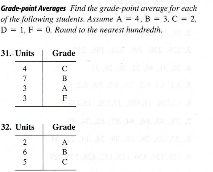 Solved Grade point Averages Find the grade point average for Chegg com