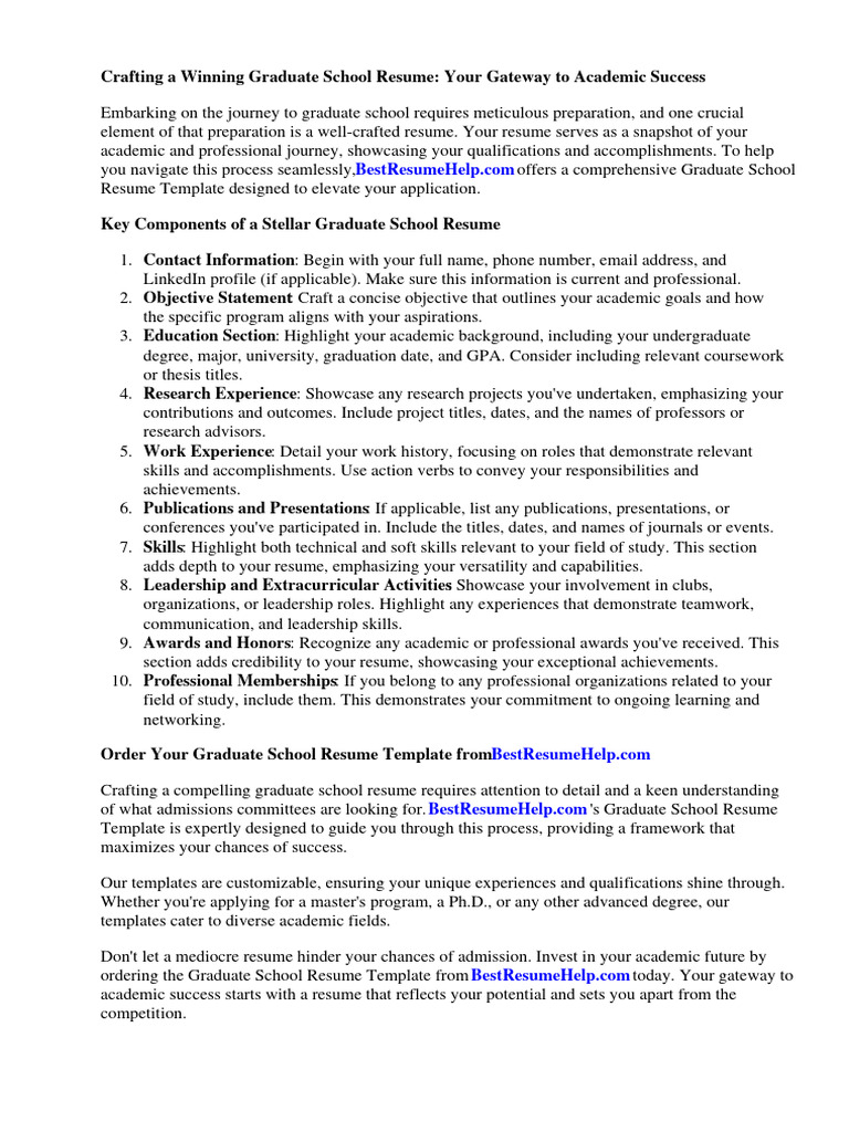 Graduate School Resume Template PDF Résumé Postgraduate Education