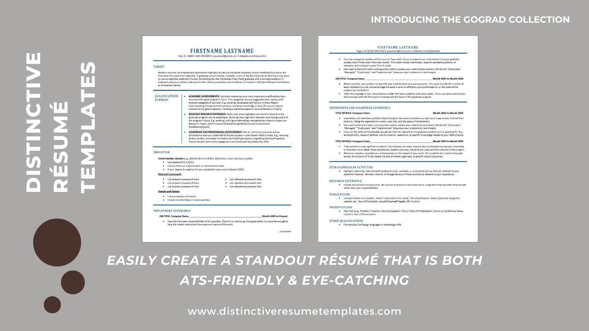 2023 Graduate School Resume Template for Google Docs Word Pages
