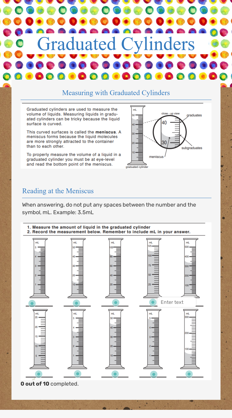 Online Graduated Cylinder Worksheet