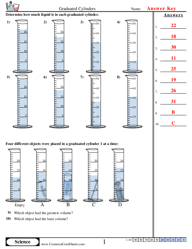 Graduated Cylinder Worksheet Key