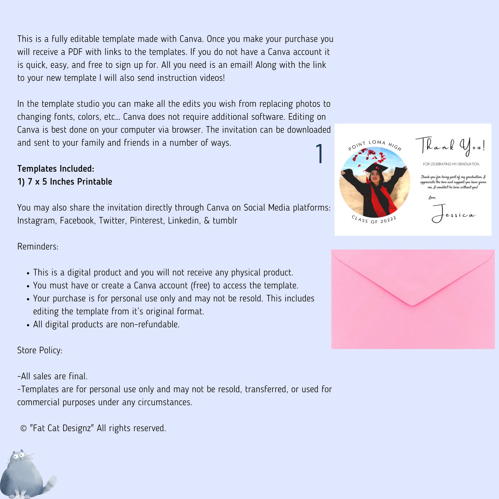 Graduation Thank You Card Template Printable Editable Etsy