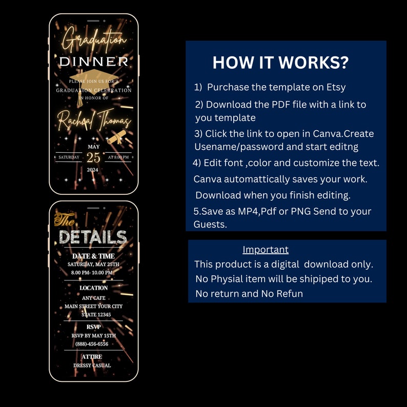 Graduation Dinner Invitation Template Digital Graduation Party Animated