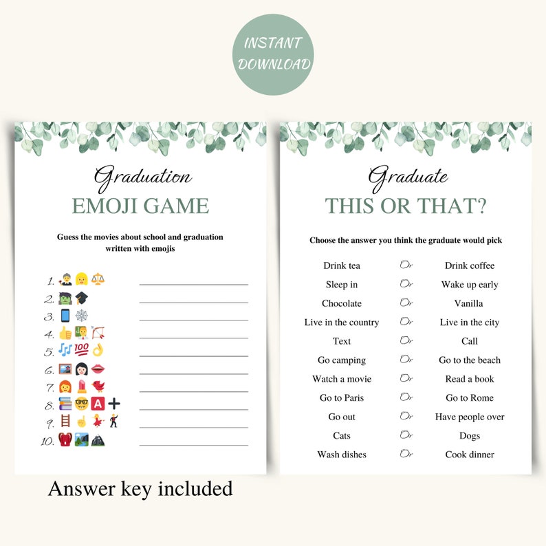 10 Printable Graduation Party Games Eucalyptus Theme Grad Games