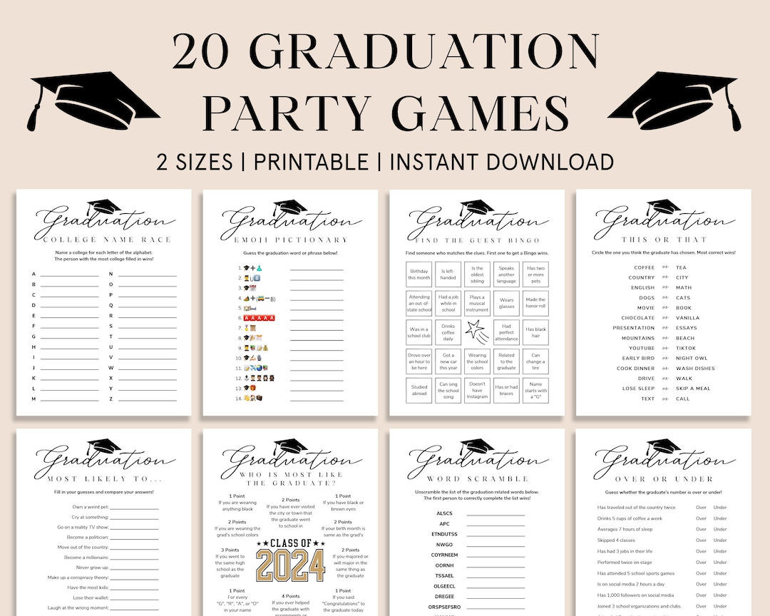 Graduation Party Games Bundle Printable Elegant Graduation Games