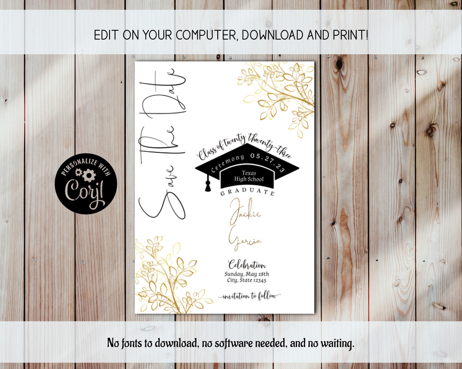 Graduation Save the Date Template: Elegant Customizable Design (digital