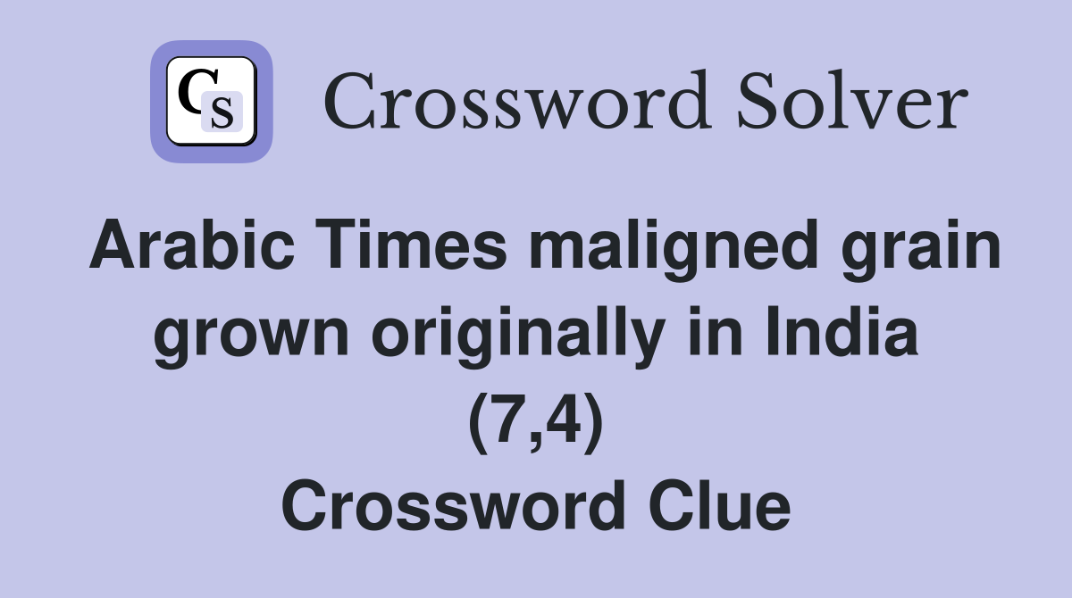 Arabic Times maligned grain grown originally in India (7 4) Crossword