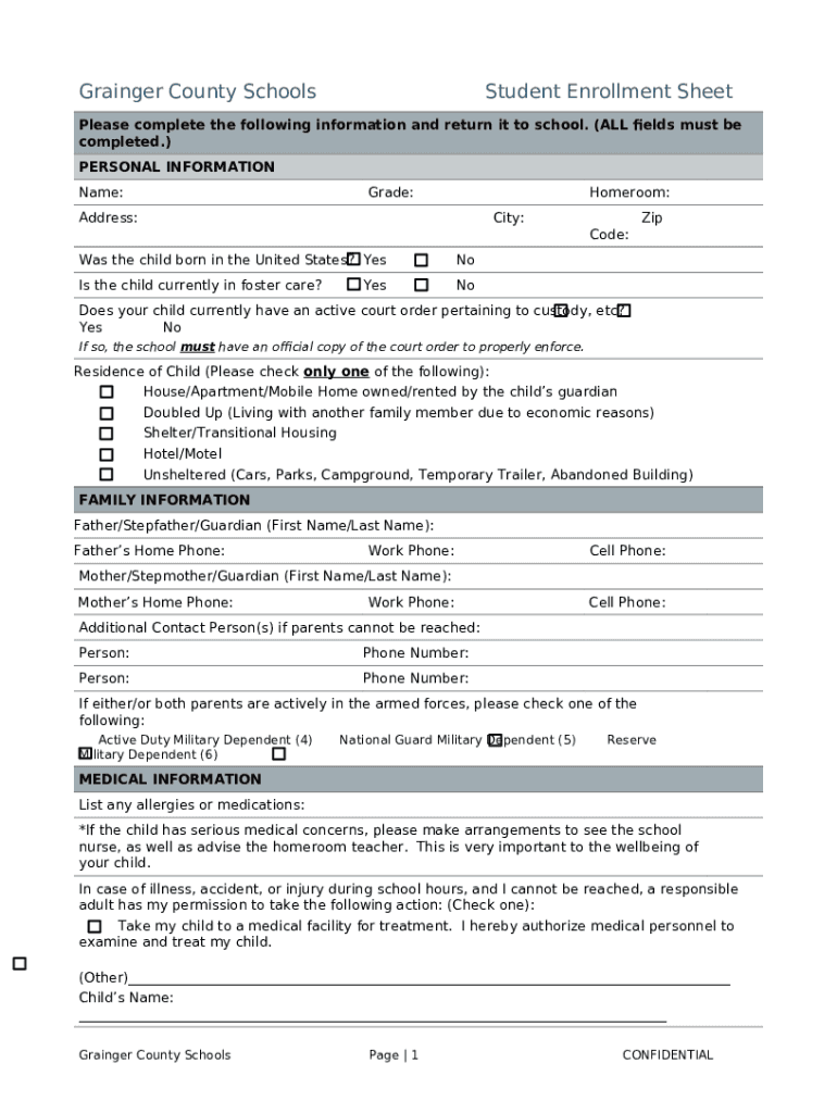 Grainger County Schools Student Enrollment ( Doc Template pdfFiller