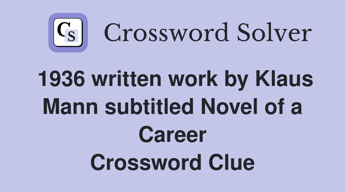1936 written work by Klaus Mann subtitled Novel of a Career Crossword