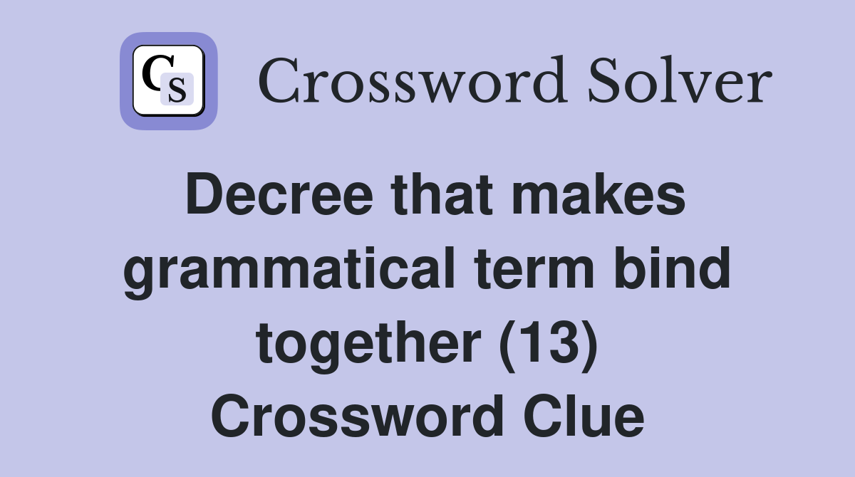 Decree that makes grammatical term bind together (13) Crossword Clue