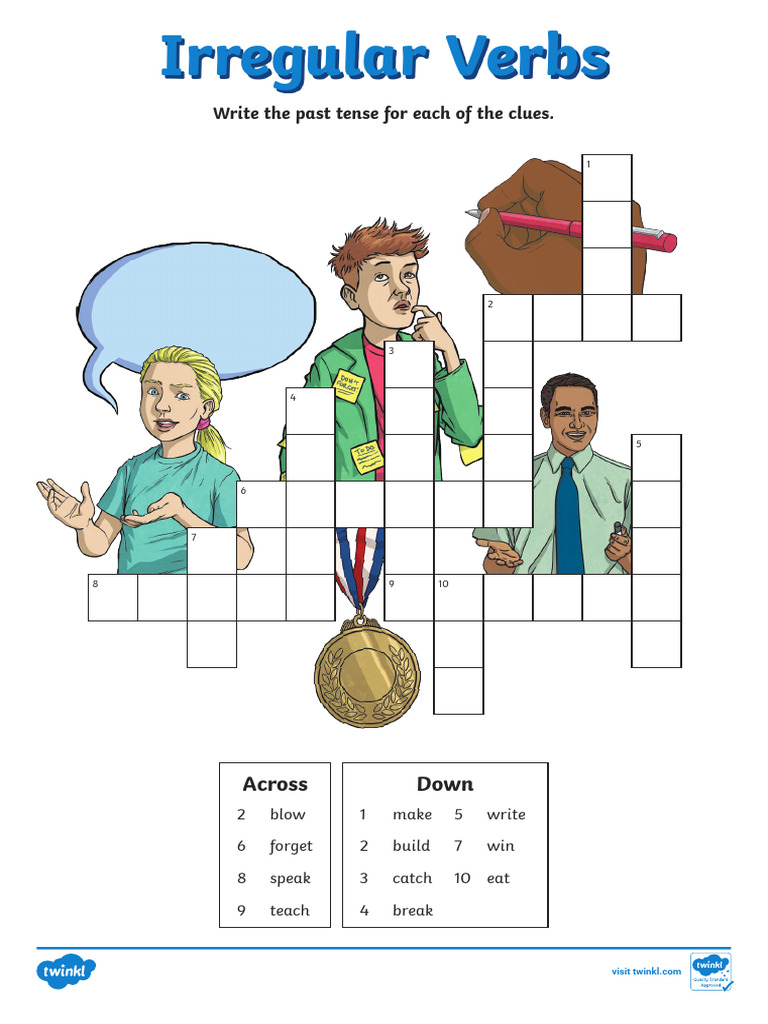 Irregular Verbs CROSSWORD PDF Grammatical Tense Language Families