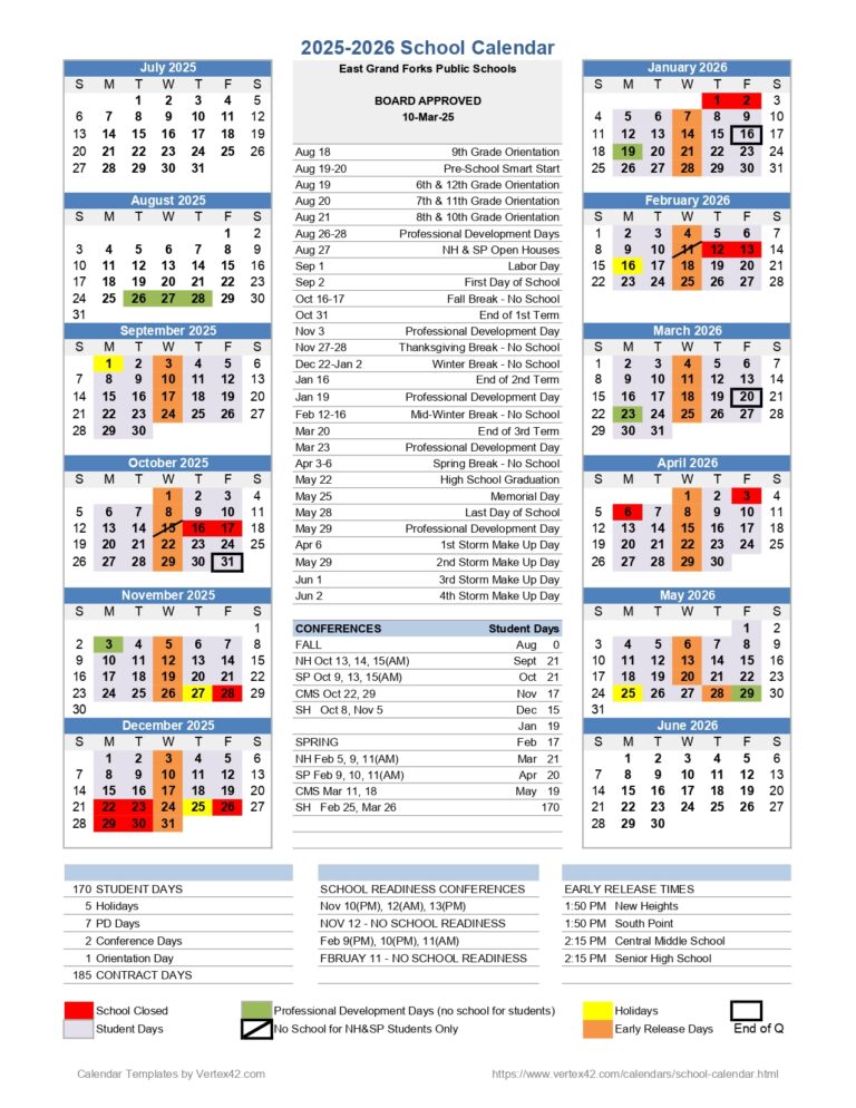 East Grand Forks Public Schools mn Calendar 25 26 Revised pdf EduCounty