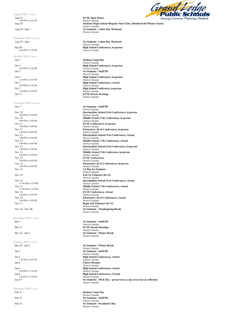 Grand Ledge Public Schools Calendar 2025 Schoolcalendars net