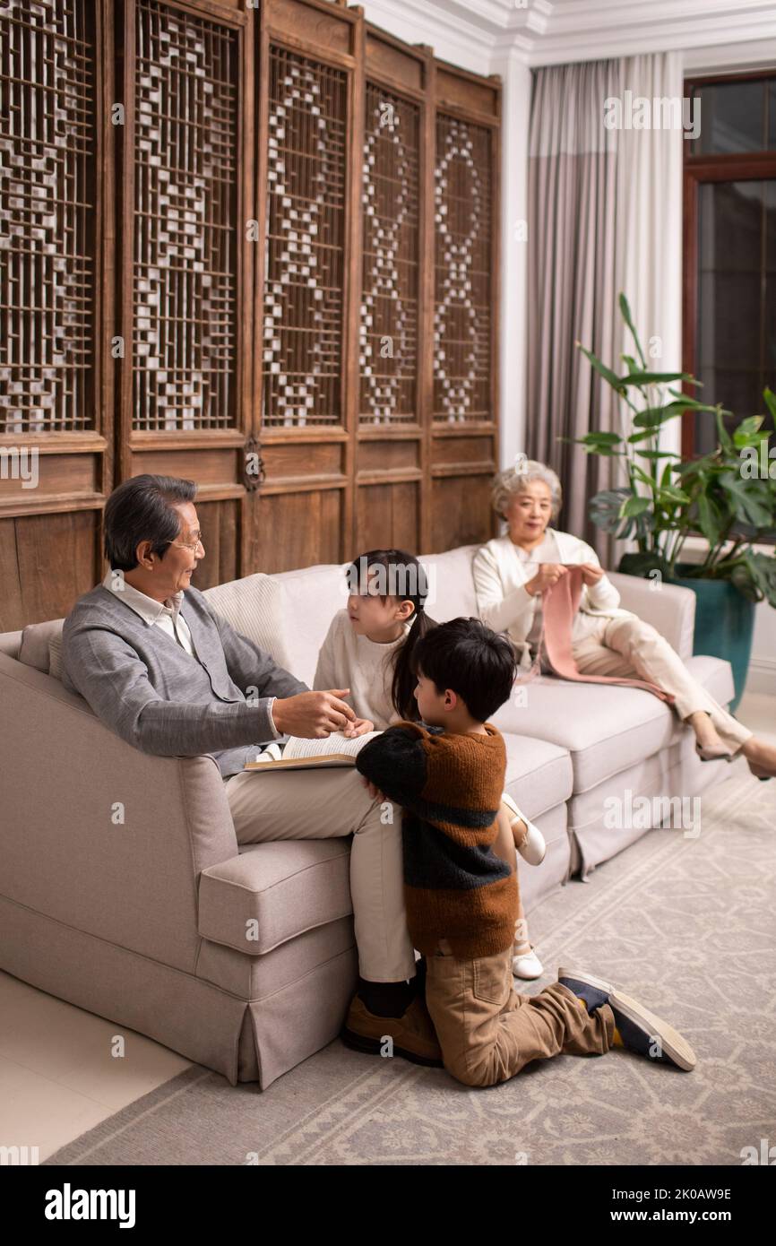 Grandfather reading story grandson hi res stock photography and images