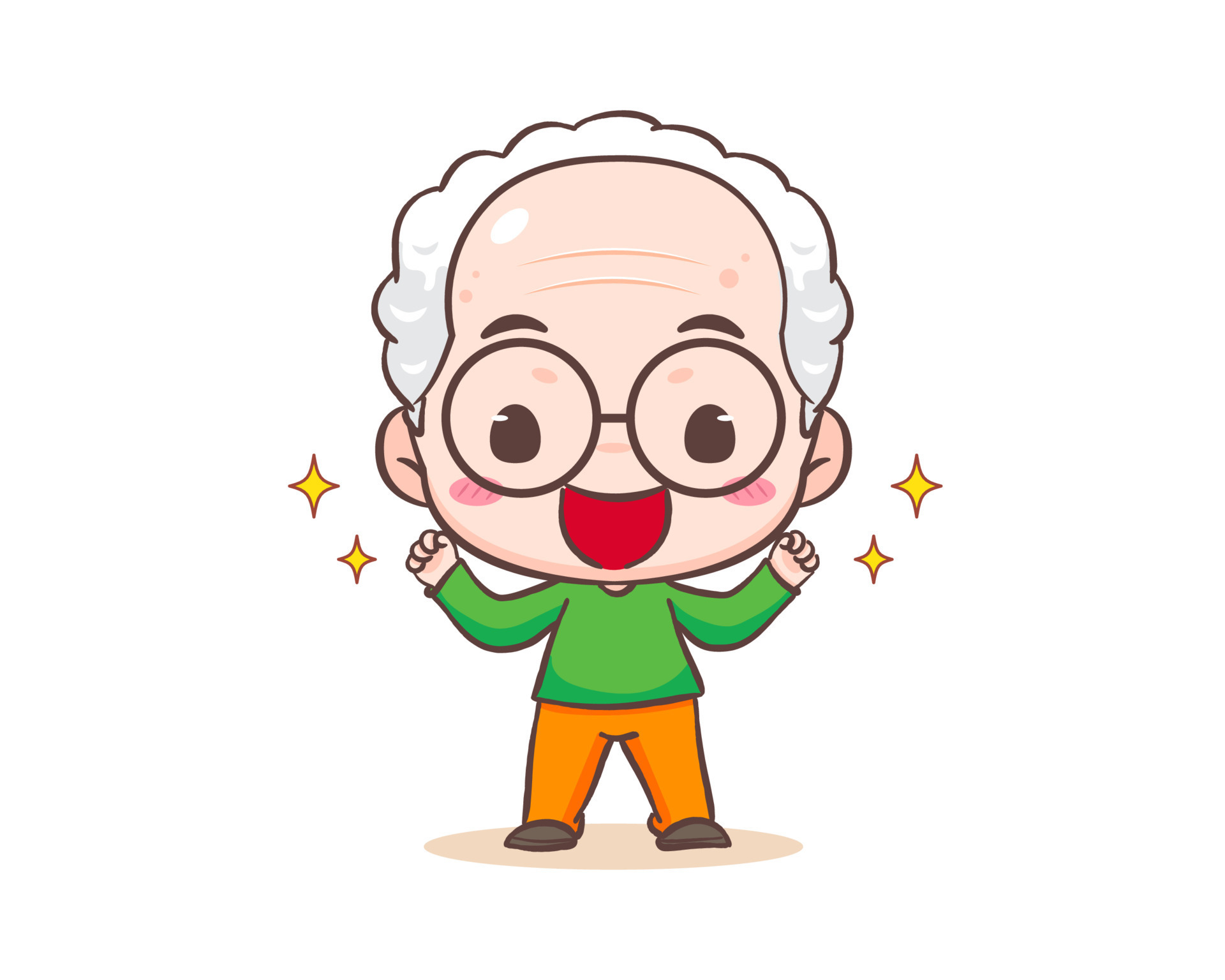 Cute grandfather or old man cartoon character Strong Grandpa with