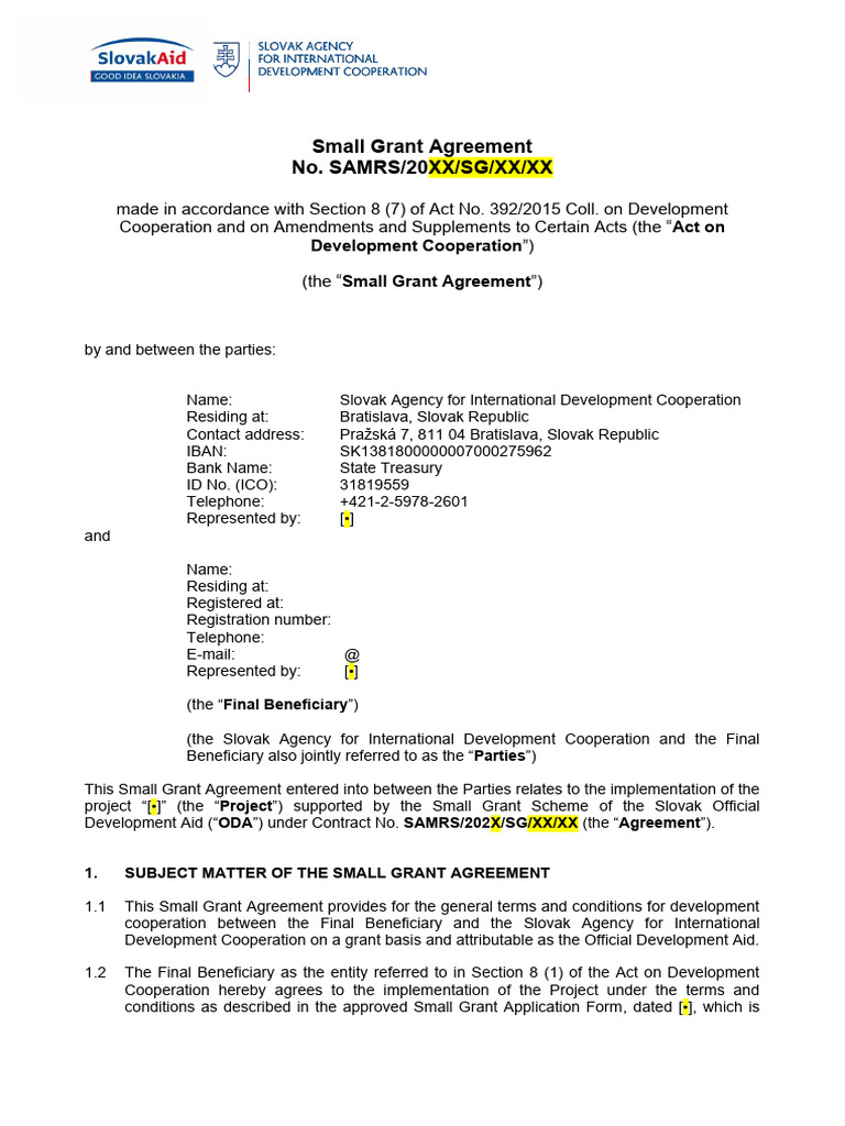 005 ZU Nairobi Small Grant Agreement Template 2024 PDF United