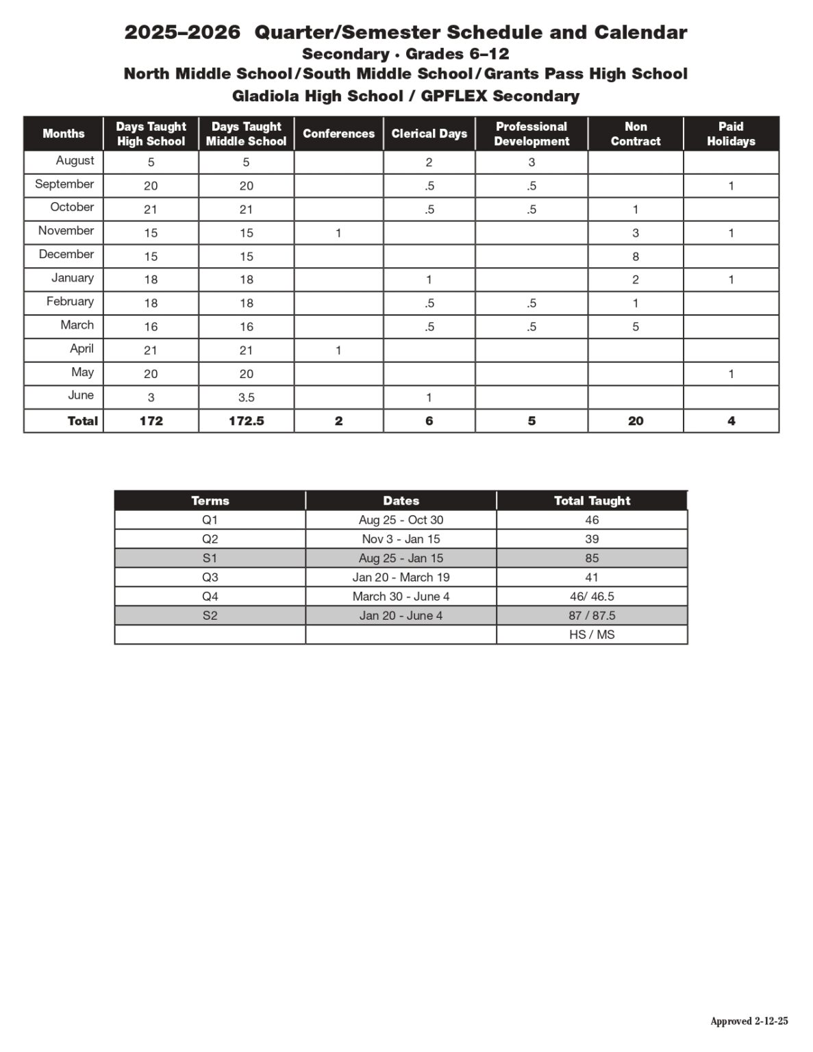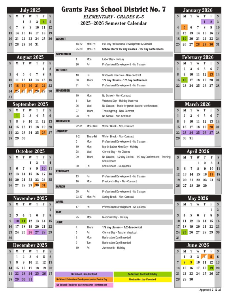 Grants Pass School District 25 26 Calendar revised PDF EduCounty