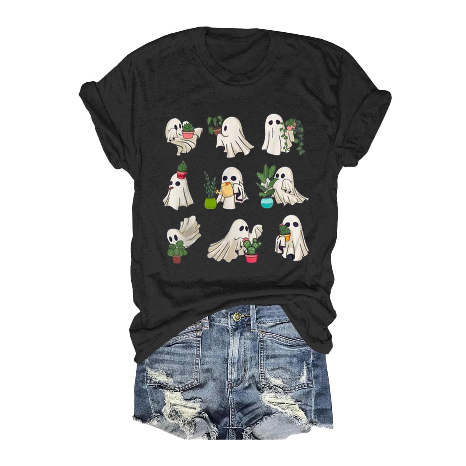 Fshinging Women Tops 2025 T Shirts Pumpkin Cute Ghost Cartoon Graphic