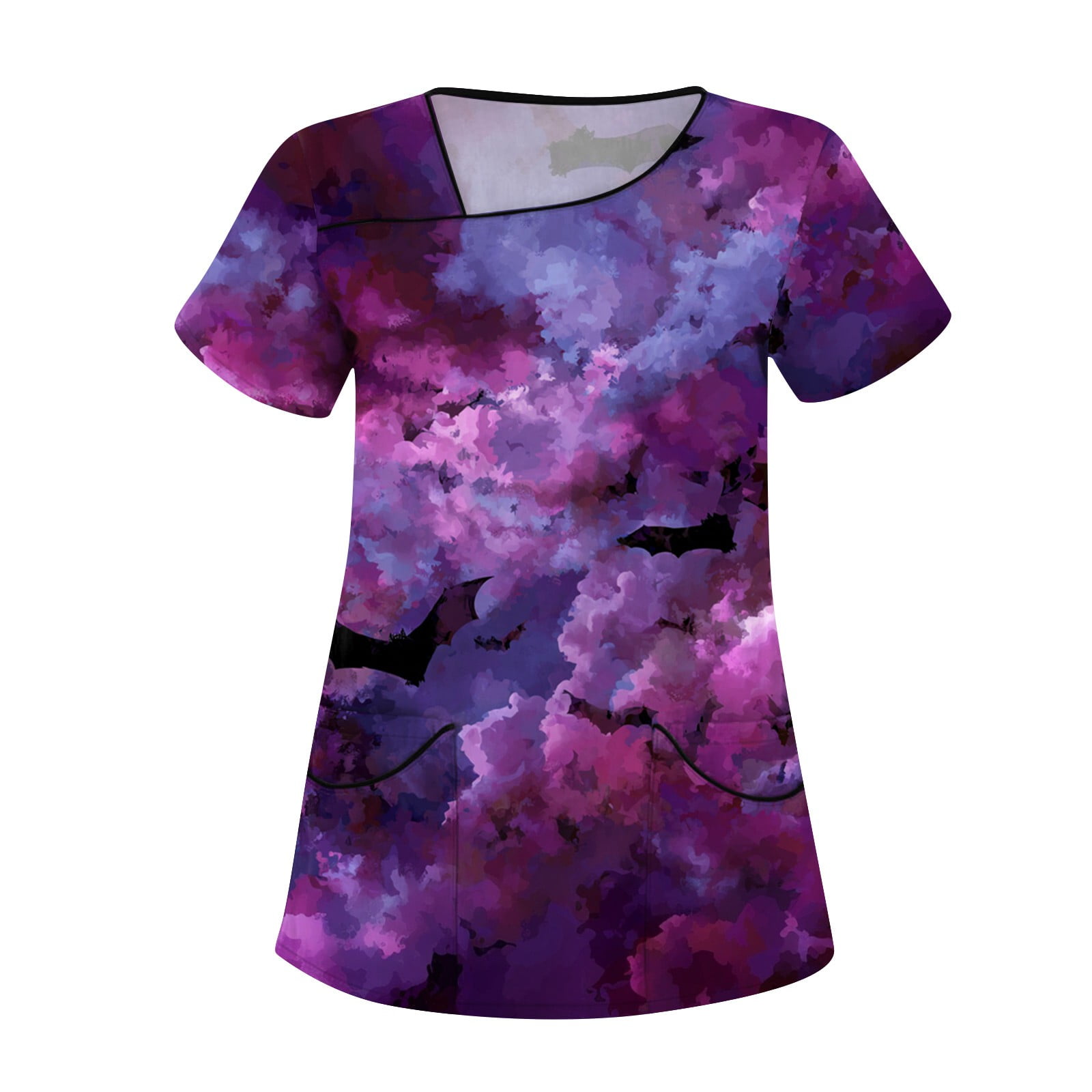 Halloween Funny Graphic Nurse Scrub Tops for Women Workwear Short