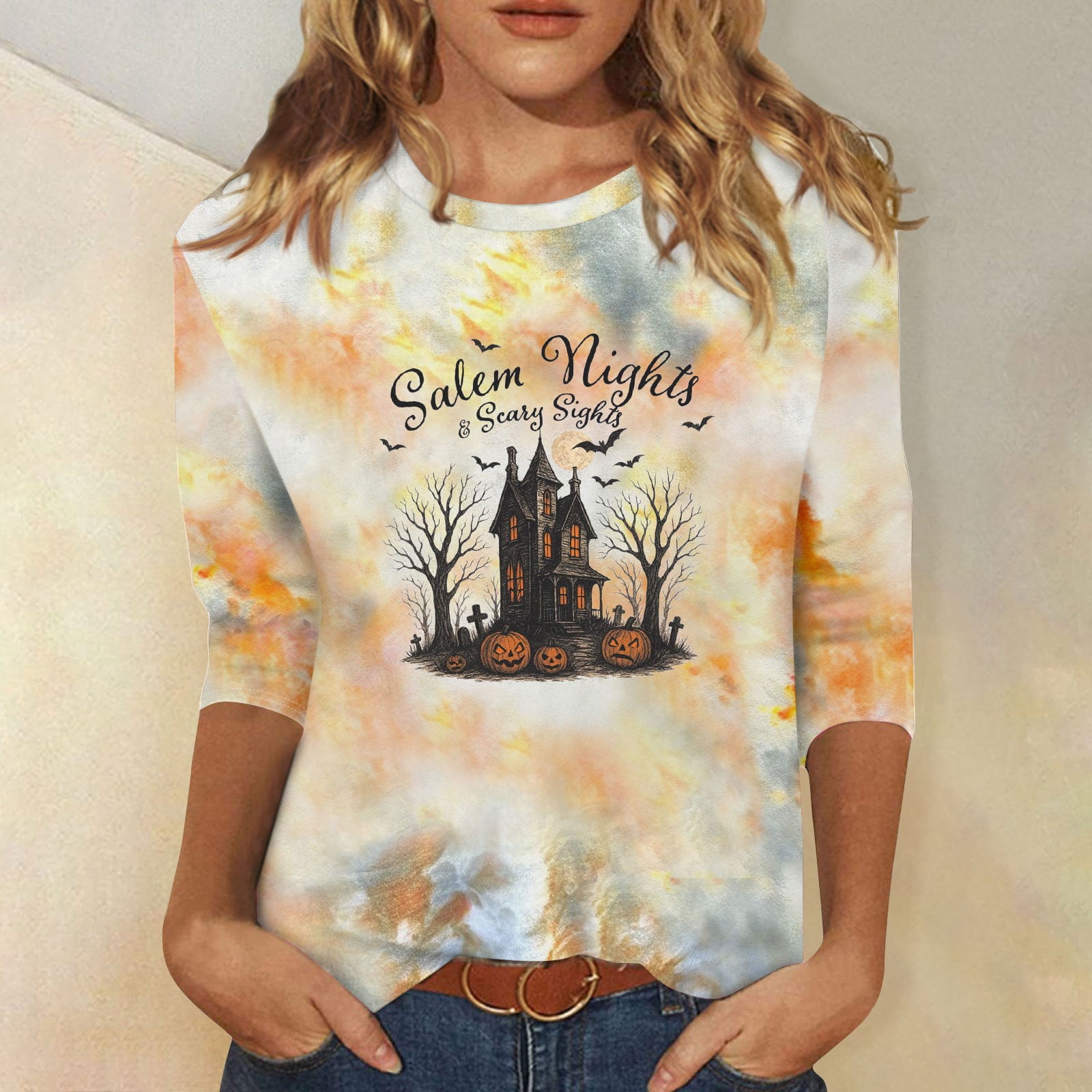CAUYDY Halloween Shirts for Women Loose 3/4 Sleeve Tunic Tops Trendy