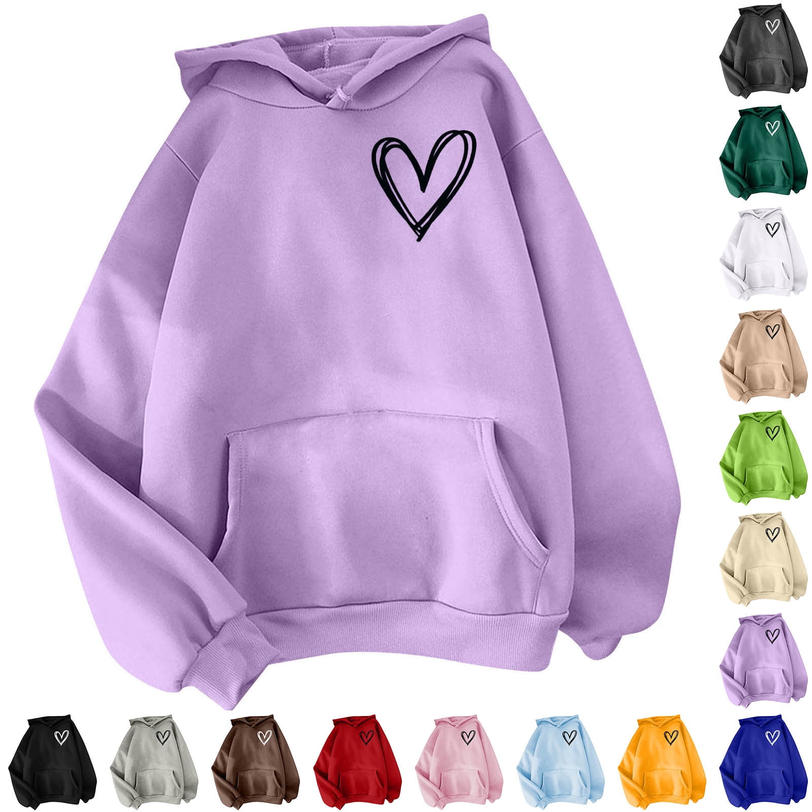 Horkkom Graphic Hoodies for Women Heart Print Pullover Hoodies Casual