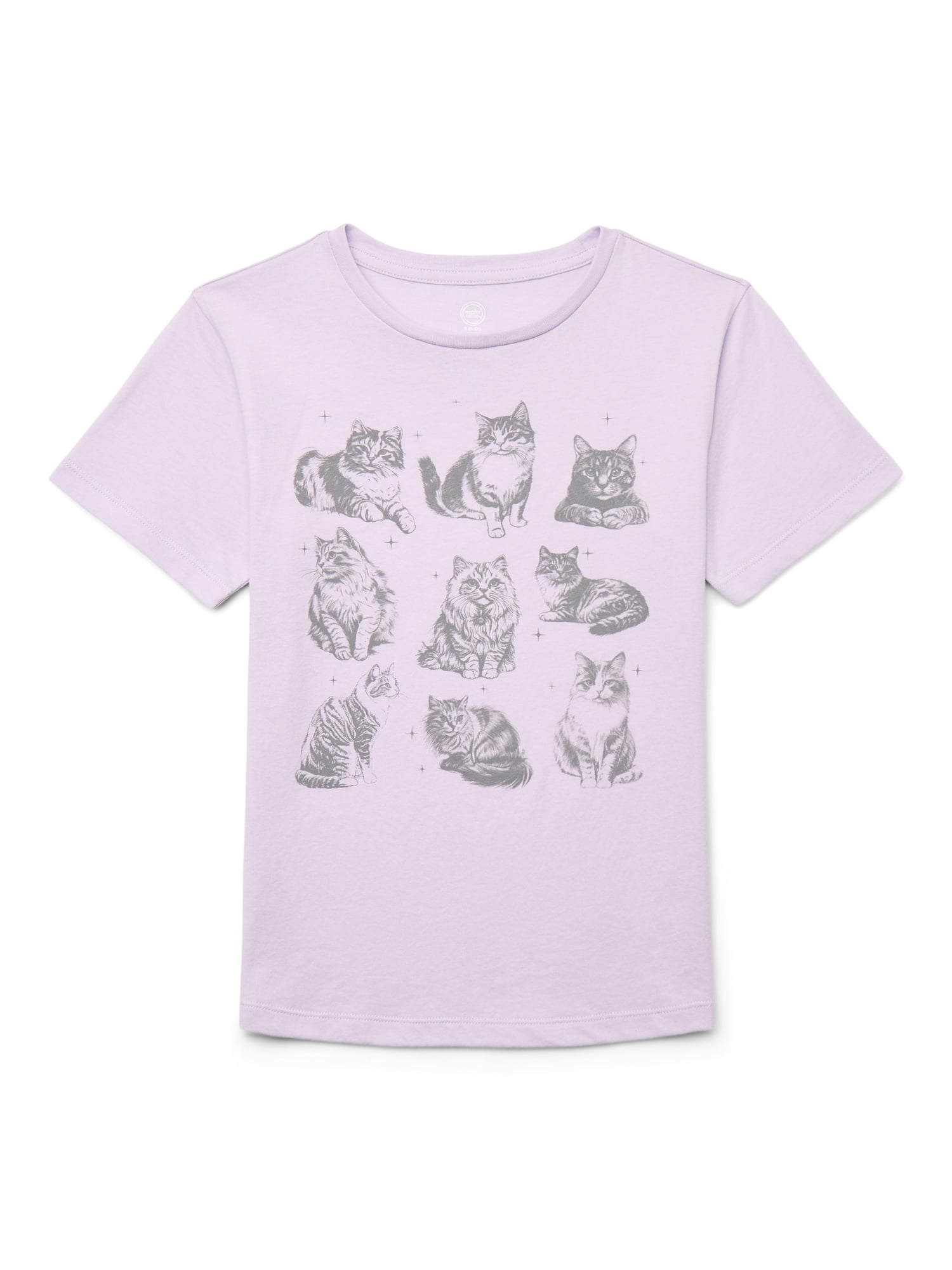 Wonder Nation Cats Girls Graphic Crew Neck Short Sleeve Tee Sizes 4