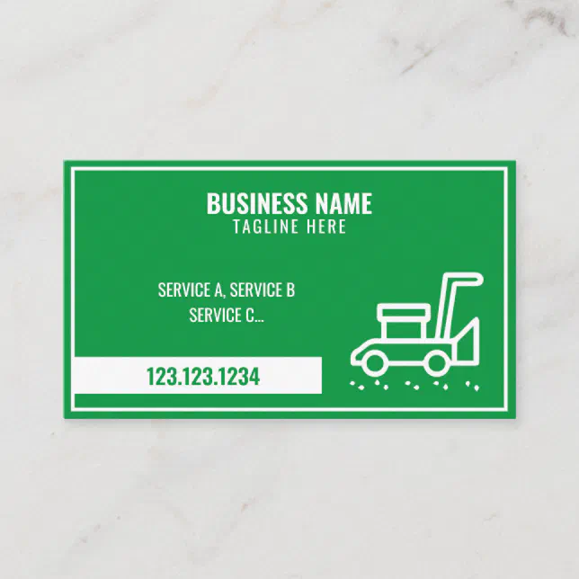 Simple Green White Frame Lawnmower Grass Cutting Business Card Zazzle
