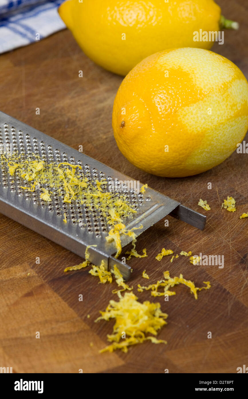 Wooden cutting board with grated lemon peel Stock Photo Alamy